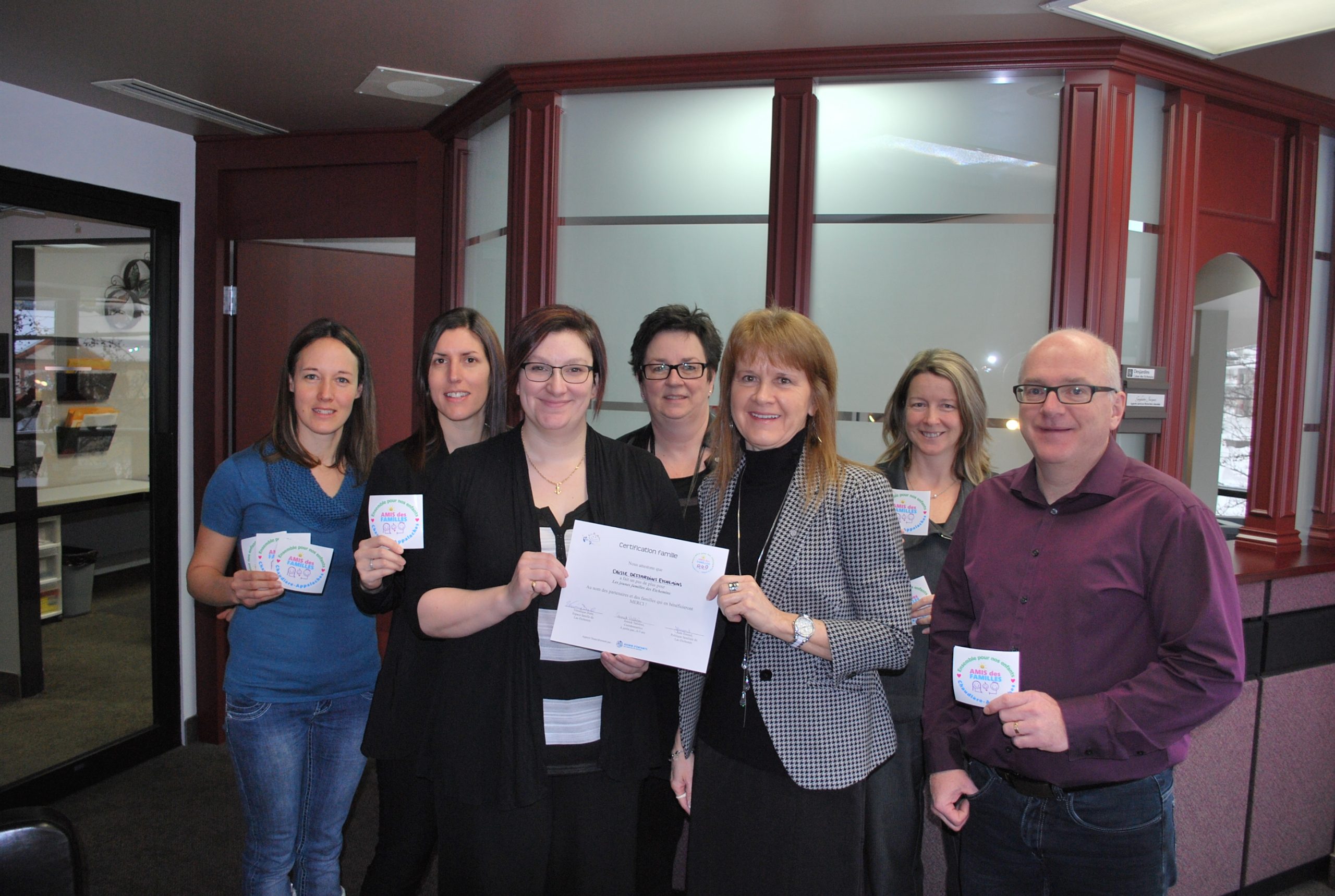 Certification »familles» attribuée à la Caisse des Etchemins